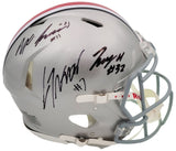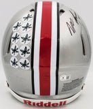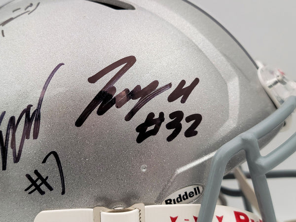 This is an Ohio State Buckeyes Silver Full Size Authentic Speed Helmet that has been hand signed by C.J. CJ A Stroud, Jaxon Smith-Njigba & TreVeyon Henderson This item has been certified authentic by Beckett Authentication (BAS) and comes with their tamper-proof QR Code sticker that can be verified on the Beckett-authentication.com.
