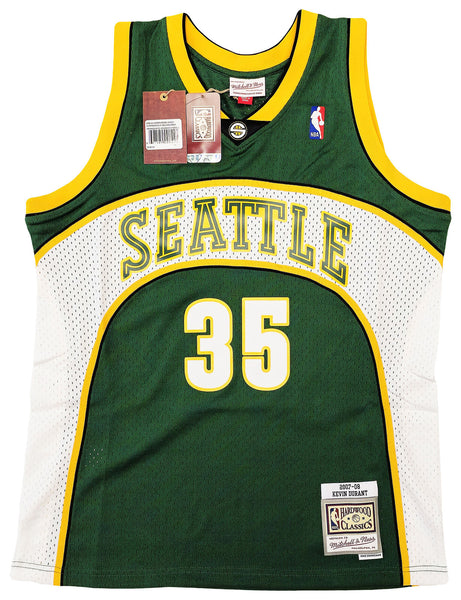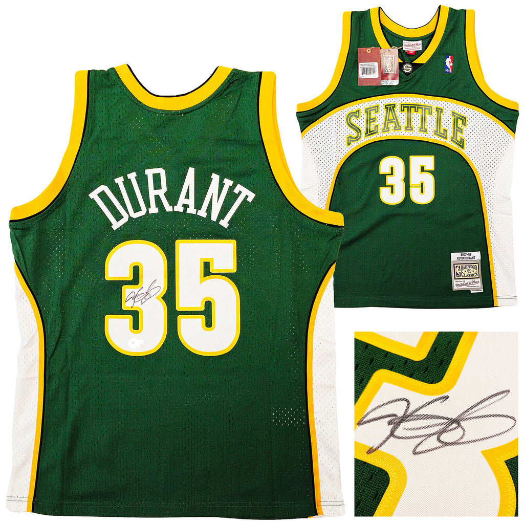 This is a Green Authentic Mitchell & Ness Seattle Supersonics Swingman 2007-08 Jersey that has been hand signed by Kevin Durant. This jersey is Size L. This item has been certified authentic by Beckett Authentication (BAS) and comes with their tamper-proof QR Code sticker that can be verified on beckett-authentication.com.