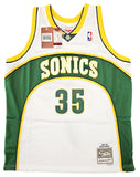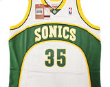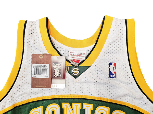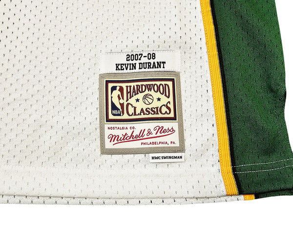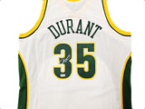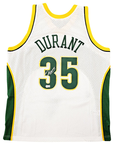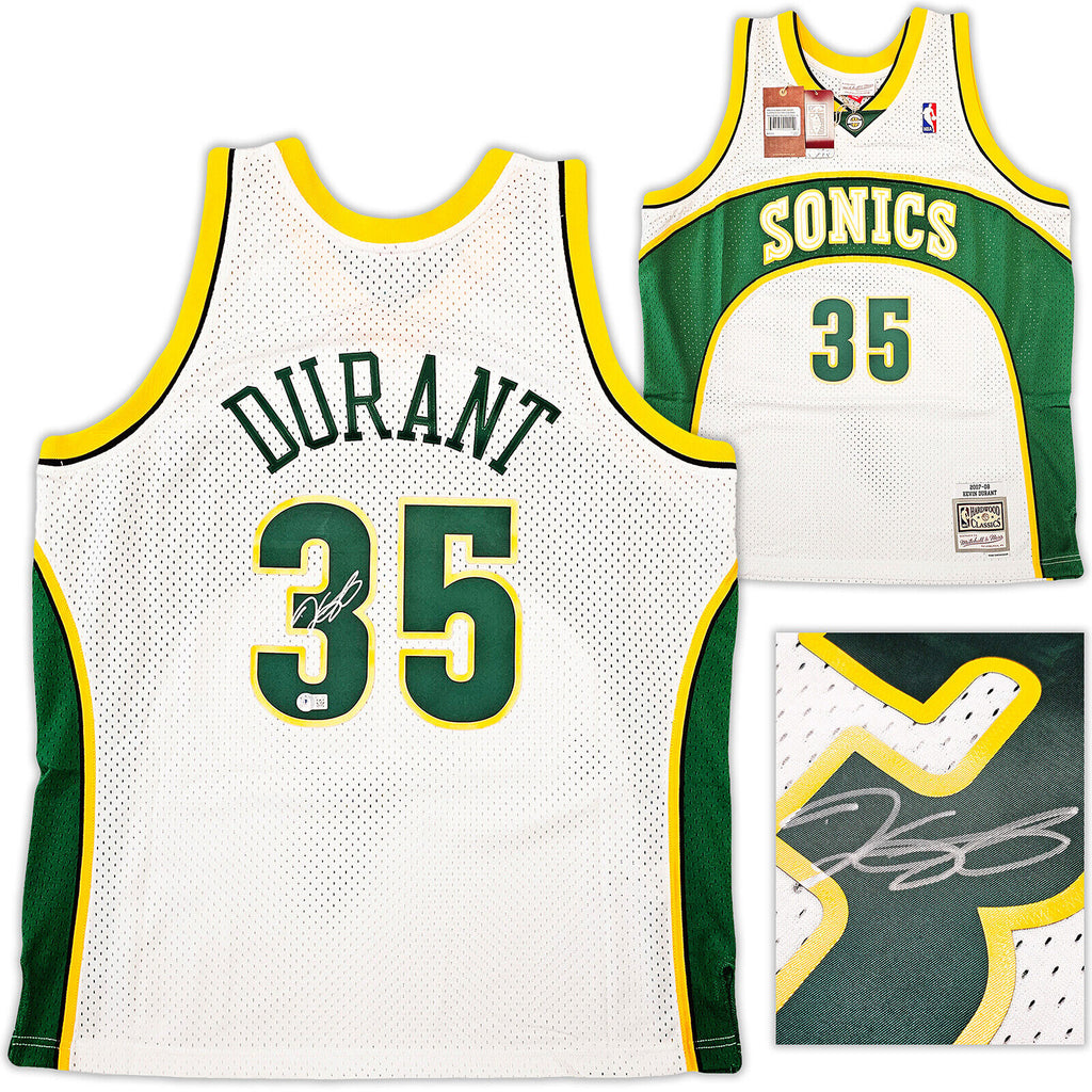 This is a White Authentic Mitchell & Ness Seattle Supersonics Swingman 2007-08 Jersey that has been hand signed by Kevin Durant. This jersey is Size XL. This item has been certified authentic by Beckett Authentication (BAS) and comes with their tamper-proof QR Code sticker that can be verified on beckett-authentication.com.