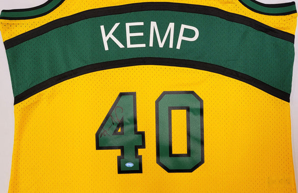 This is a 1994-95 Mitchell & Ness Hardwood Classics Yellow Jersey that has been hand signed by Shawn Kemp. This jersey is Size XXL. Please note, Kemp signed the front & back of this jersey. This item was signed in the presence of a Mill Creek Sports representative and comes with their serial numbered hologram and matching certificate of authenticity.