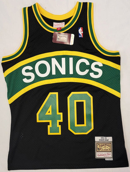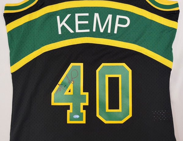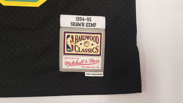 This is a 1994-95 Mitchell & Ness Hardwood Classics Black Jersey that has been hand signed by Shawn Kemp. This jersey is Size M. This item was signed in the presence of a Mill Creek Sports representative and comes with their serial numbered hologram and matching certificate of authenticity.