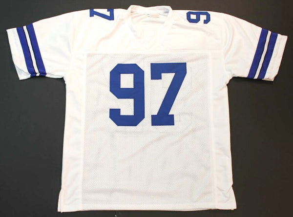 Custom on-field style jersey. Everything is sewn on, size XL. Hand-signed in black felt-tip pen by Taco Charlton. The autograph includes an official James Spence Authentication (JSA) hologram and matching COA for authenticity purposes.Authentication: JSA COA