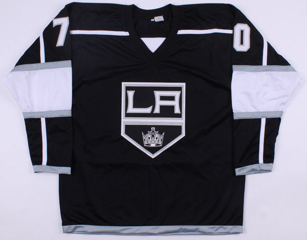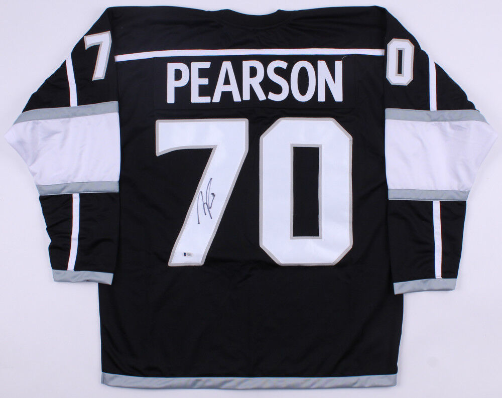 Custom on-ice style jersey. Everything sewn on, size XL. Hand-signed in black felt-tip pen by Tanner Pearson. The lot / autograph(s) includes an official Beckett Authentication Services serially numbered hologram and matching COA for authenticity purposes.Authentication: Beckett COA
