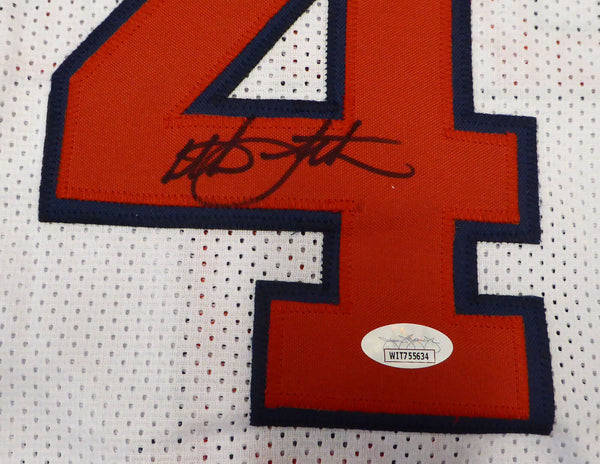 This is a White Jersey that has been hand signed by Christian Laettner. This is a custom jersey with no name brand. The approximate size is XL. It has nice sewn in name and numbers. This item has been certified authentic by JSA and comes with their tamper-proof sticker and matching certificate of authenticity.