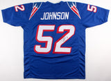 Custom on-field style jersey. Everything sewn on, size XL. Hand-signed in black felt-tip pen by Ted Johnson.The lot / autograph(s) includes an official James Spence Authentication (JSA) hologram and matching COA for authenticity purposes. The signing of this item was witnessed by JSA.Authentication: JSA COA