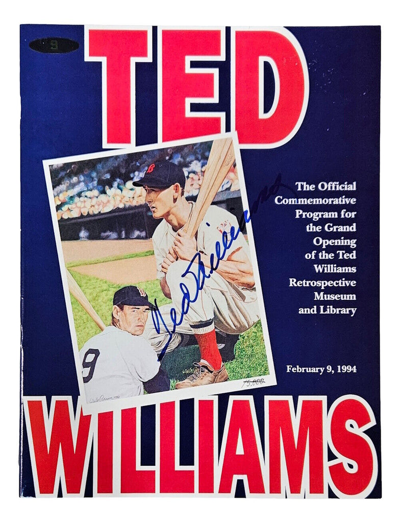 Featured is a Ted Williams signed 1994 Ted Williams Museum program. This program has been hand signed by Williams and comes with the Williams exclusive hologram. This program would make a great addition to any sports memorabilia collection!. SPECIFICATIONS Autographed By: Ted Williams Team: Boston Red Sox Sport: Baseball Authentication: Beckett Grading Services