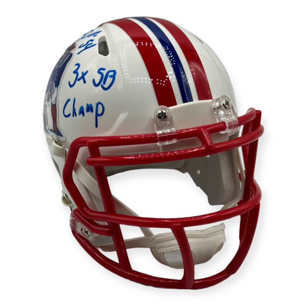 This throwback mini helmet has been personally hand-signed by Tedy Bruschi of the New England Patriots "3x SB Champ" Inscription100% AuthenticCertificate of authenticity by JSAasgmemorabilia.com