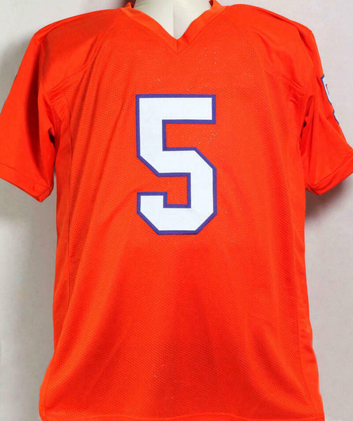 Tee Higgins Autographed Orange College Style Jersey w/ Insc - Beckett W Auth *5 THIS IS NOT AN NCAA JERSEY. THIS HAS NO TAGS, NO LOGOS, NO EMBLEMS. This is a hand autographed Jersey of Tee Higgins. This item is inscribed with 2018 National Champs. This is Custom Made (non name brand) Authentic Style (stitched letters and numbers). This item has a Beckett Witnessed Authentication, which comes with a numbered and a matching Beckett Certificate of Authenticity. You can view this item on the Beckett Authentication website and it shows when and where the item was signed. It was signed either at a public autograph appearance or a private signing. This is a stock photo of the item. Although you may not receive this exact item, the item you receive is virtually identical and brand new in great shape. Jersey size is XL.