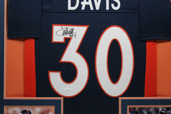 TERRELL DAVIS AUTOGRAPHED & PROFESSIONALLY FRAMED PRO-STYLE JERSEY(Occasionally our own stock pictures are used at times due to quantity of framing, all frames will look identical as the one pictured)Item is accompanied with a Certificate of Authenticity issued by JSA and corresponding tamper proof hologram on the jersey.THE FRAMED JERSEY MEASURES 35"x 44" & COMES WITH THE FOLLOWING:-UV Protected Acrylic-Triple Acid Free Team Colored Matting-2 High Quality 8"x10" Photos-Team Logo(WIRE ON BACK FOR EASY HANGING!)Free local pick up in Arlington Heights, IL