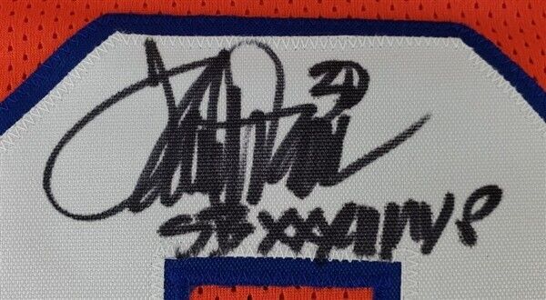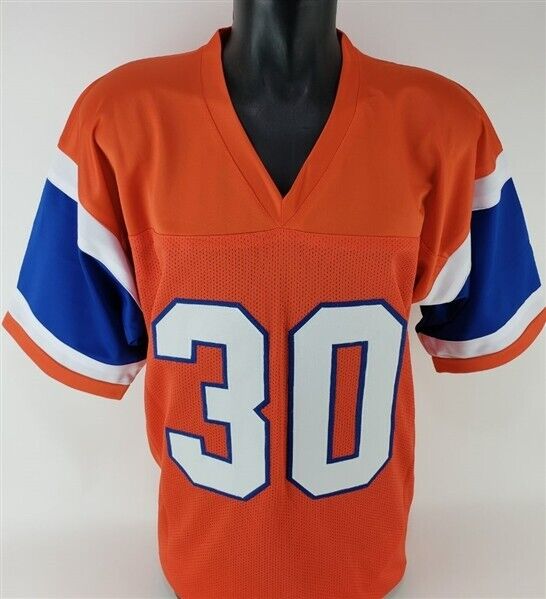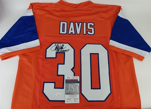 Custom on-field style jersey. Everything is sewn on, size XL. Hand-signed in black paint pen by Terrell Davis (HOF). The autograph includes an official James Spence Authentication (JSA) hologram and matching COA for authenticity purposes. The signing of this item was witnessed by JSA.Authentication: JSA COA
