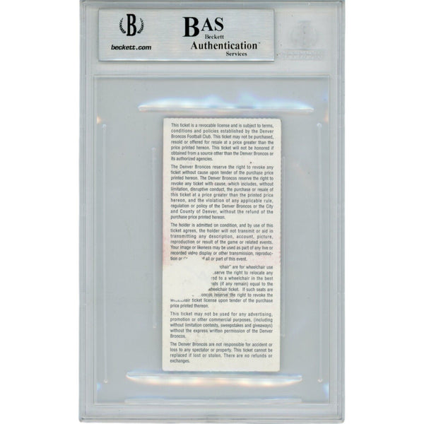 The number in the listing title is just an inventory sku for our records and is not the authentication number. The item pictured is the exact item you will receive, please see photos for condition. This is a Denver Broncos Slabbed 01/17/1999 AFC Championship Ticket Stub that was personally autographed by Terrell Davis. Includes a certificate of authenticity from Beckett Authentication Services (BAS) and Denver Autographs.FREE SHIPPING within the USA on orders over $10!