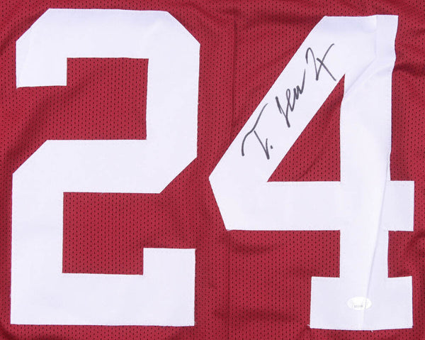 Custom on-field stye jersey. Everything is sewn on, size XL. Has been hand-signed in black felt-tip pen by Terrell Lewis. The autograph(s) includes an official James Spence Authentication (JSA) "Signature Debut" hologram and COA. "Signature Debut" is the autographed memorabilia equivalent to a rookie card. The JSA definition of a "Signature Debut" is as follows: "Any item that is autographed and received by JSA prior to the last game of the signer's official rookie season.Authentication: JSA Signature Debut COA