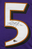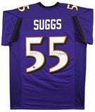This Autographed Purple Pro Style Jersey with the inscription of "T-Sizzle" has been Personally Signed by Terrell Suggs of the Baltimore Ravens. This item is 100% Authentic to include a hologram by Beckett Authentication Services. This item will come with an affixed Beckett Authentication Services (BAS) authentication sticker, which includes a scannable QR code to verify authenticity. Please note that Beckett no longer provides serial-numbered COA cards, and the attached BAS sticker will serve as the complete authentication for this item. This is a BAS Witnessed Protection Program item which means a Beckett Authentication Service representative was present when this item was being signed. We conducted an autograph signing with Terrell Suggs where multiples of the same item were signed. While the photographs are representative of this item, the size, placement and strength of the signature may vary. Each item is hand signed, therefore, each autograph is unique. This item can be verified through BAS Witnessed. This is a X-Large sized, non-branded, custom-stitched Jersey.