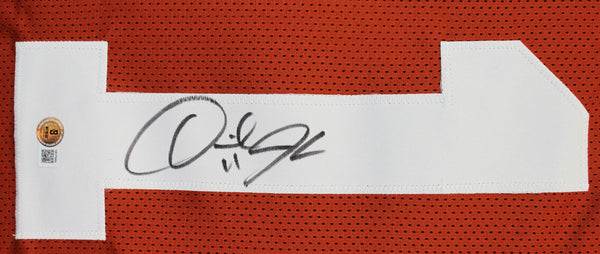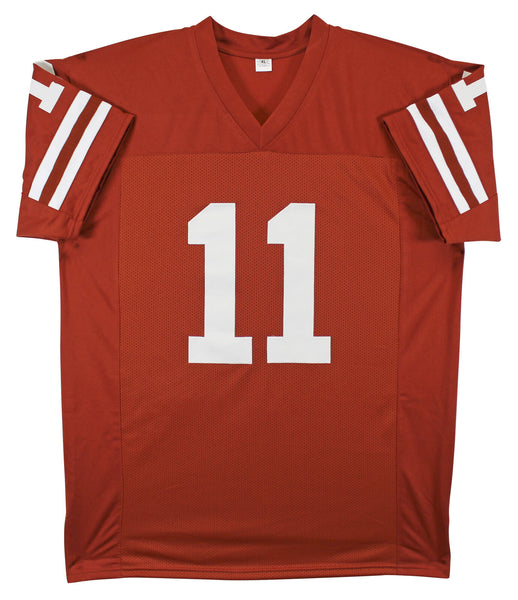This Autographed Burnt Orange Pro Style Jersey has been Personally Signed by Derrick Johnson of the Texas Longhorns. This item is 100% Authentic to include a hologram by Beckett Authentication Services. This item will come with an affixed Beckett Authentication Services (BAS) authentication sticker, which includes a scannable QR code to verify authenticity. Please note that Beckett no longer provides serial-numbered COA cards, and the attached BAS sticker will serve as the complete authentication for this item. This is a BAS Witnessed Protection Program item which means a Beckett Authentication Service representative was present when this item was being signed. We conducted an autograph signing with Derrick Johnson where multiples of the same item were signed. While the photographs are representative of this item, the size, placement and strength of the signature may vary. Each item is hand signed, therefore, each autograph is unique. This item can be verified through BAS Witnessed. This is a X-Large sized, non-branded, custom-stitched Jersey.