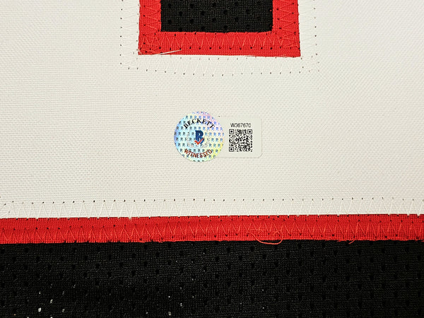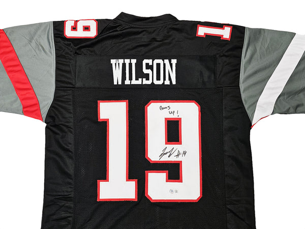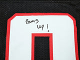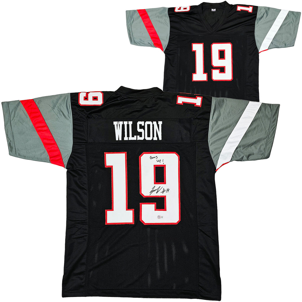 This is a Black Jersey that has been hand signed by Tyree Wilson. This is a custom jersey with no name brand. The approximate size is XL. It has nice sewn in name and numbers. This item was inscribed "Guns Up." This item has been witnessed and certified authentic by Beckett Authentication (BAS) and comes with their tamper-proof witness sticker.