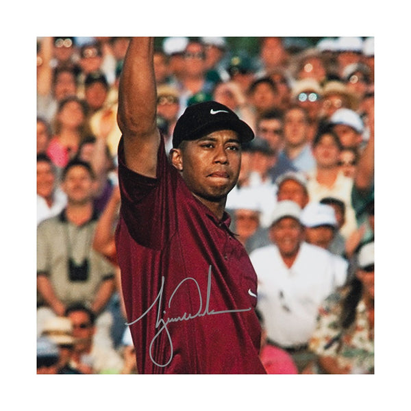 August National has long been a religious-type experience for golf fans. Over the years, Tiger Woods has provided dozens of memorable moments at the Masters. The 2001 edition was no exception. It served as Woods second Masters title and sixth major championship overall. Perhaps biggest of all was that it completed the Tiger Slam, which gave Woods all major titles at the same time. On the last hole of the tournament, Woods needed a par to win. In his typical Sunday fashion, he came up huge on the biggest stage with a birdie for the win. This image shows a victorious Woods after sinking his putt on the 18th and final hole. Woods has signed this 2001 Masters 20 x 24 image in silver paint pen. His signature is deemed authentic by virtue of Upper Deck Authenticated's Five-Step Process.