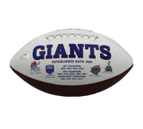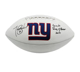 A New York Giants Embroidered White Football hand signed by Tiki Barber. The item and signature are in excellent condition. In addition to signing his name, Tiki also inscribed "Giants Ring Of Honor" on the item. Tiki was drafted in Round 2 of the 1997 NFL Draft. He is a 3x Pro Bowler (2004-2006), First-team All-Pro (2005), a New York Giants Ring of Honor, ACC Player of the Year (1996) and ACC Offensive Player of the Year(1996). AUTHENTICATION: The item is accompanied by a Certificate of Authenticity - Serial Numbered and Databased Hologram - Picture of Tiki from the Signing