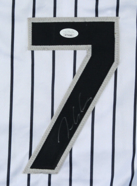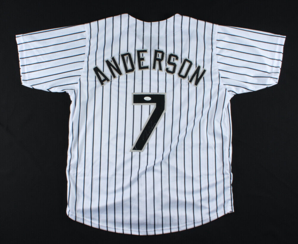 Custom on-field style jersey. Everything is sewn on, size XL. Hand-signed in silver paint pen by Tim Anderson. The lot / autograph(s) includes an official James Spence Authentication (JSA) hologram for authenticity purposes. The signing of this item was witnessed by JSA.Authentication: JSA Hologram
