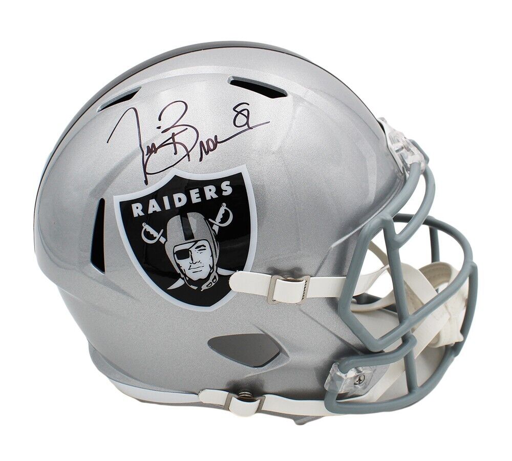 An Las Vegas Raiders Speed Replica NFL Helmet hand signed by Tim Brown. The item and signature are in excellent condition. Tim is 9x Pro Bowler, 7x All-Conference Selection, 1987 Heisman Trophy Winner, Class of 2009 College Football Hall of Fame Inductee, and Class of 2015 Hall of Fame inductee. AUTHENTICATION: The item has been tagged with a SmarTag powered by Prova Technology, which gives you digital access to the items authentication records, including a proof picture from the signing.