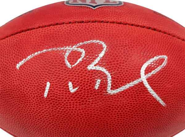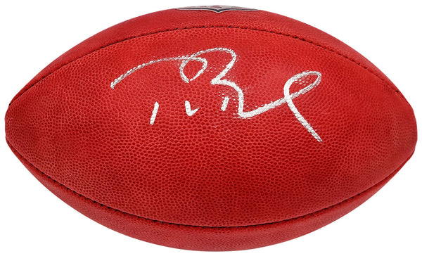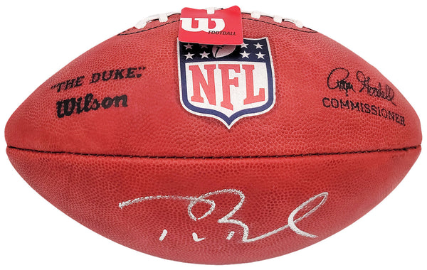 This is an Official NFL Leather The Duke Football that has been hand signed by Tom Brady. This item has been certified authentic by Fanatics and comes with their tamper-proof sticker and matching full-page certificate of authenticity.A NOTE: The signature is a little smudged, as shown in the pictures.