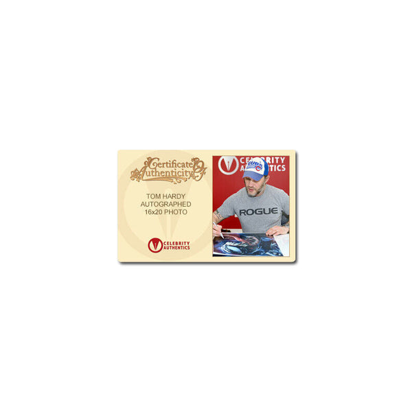Celebrity Authentics is the exclusive autograph partner of Tom Hardy. Please be aware most other online autographs purported to be Mr. Hardy's are forgeries. Mr. Hardy has only signed with Celebrity Authentics so be sure the item you choose is affixed with the Celebrity Authentics Authentication Hologram for his genuine signature.This 2018 Venom: Lethal Protector 16x20 Photo featuring Tom Hardy as Venom has been personally hand signed by Tom during his signing with Celebrity Authentics. Journalist Eddie Brock is trying to take down Carlton Drake, the notorious and brilliant founder of the Life Foundation. While investigating one of Drake's experiments, Eddie's body merges with the alien Venom -- leaving him with superhuman strength and power. Twisted, dark and fueled by rage, Venom tries to control the new and dangerous abilities that Eddie finds so intoxicating. Fantastic Venom photo ships affixed with Celebrity Authentics serial-numbered Authentication hologram and includes Celebrity Authentics Certificate of Authenticity featuring picture of Tom signing photo. Framing: Photo is meticulously dry mounted and framed using acid free backing and mat boards with white core for the finest in presentation. UV protective glass with precision cut moulding are used for smooth, clean frame edges, hand assembled in our studio. Additionally, a protective back cover is used to seal the piece with corner bumpers applied to protect your walls, providing adequate air flow. A hanger is affixed to complete the finished collectible. Each framed photo is carefully wrapped for shipping with double protective corners and cushioning to help ensure the item's safe arrival. Celebrity Authentics Framing Studios - acclaimed as the industry's finest!Please note: with multiples signed by the actor, a sample photo is used from stock to represent what you will receive. Exact autograph size and placement may vary.