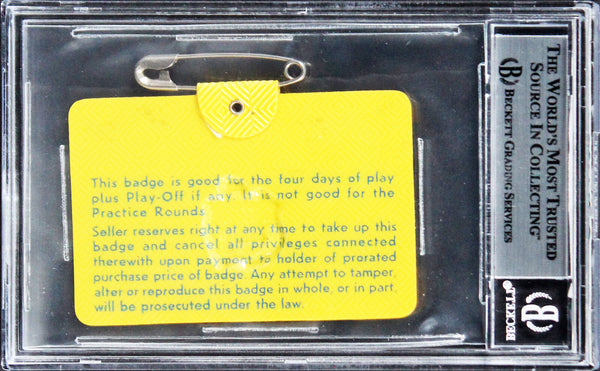 This Autographed 1973 Masters Augusta National Golf Club Badge Ticket has been Personally Signed by Tommy Aaron. This item is 100% Authentic, it comes slabbed and authenticated by Beckett Authentication Services. The authenticity can be verified on Beckett Authentication Services website. You will receive a ticket with the same inscription and a graded 10 autograph. The coloring of the ticket may vary, depending on the location on the seat. Please see the examples photographed, all are full tickets as photographed.