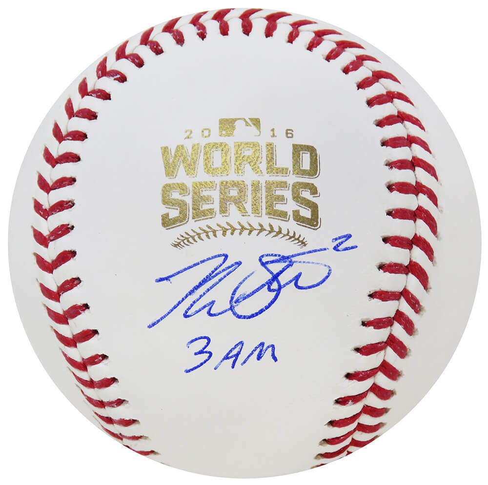 Tommy La Stella signed Rawlings official 2016 World Series MLB baseball with '3 A.M.' inscription. Item comes with a Schwartz Sports Memorabilia tamper-proof numbered hologram and Certificate of Authenticity which can be verified online.