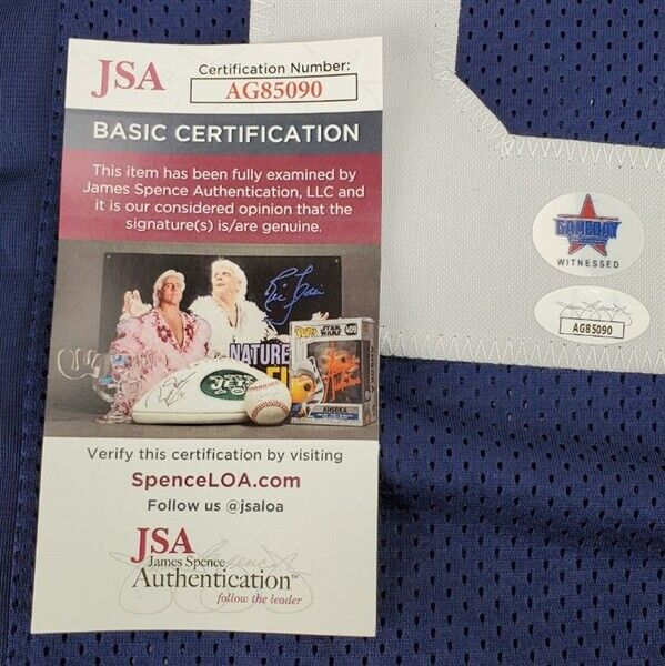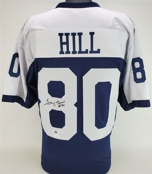 This autographed jersey has been personally hand-signed by Tony Hill of the Dallas Cowboys.This autograph is certified by James Spence Authentication (JSA). It comes with the numbered hologram and matching Certificate of Authenticity.Custom on-field style jerseys are a more affordable option for autograph seekers. These jerseys do not have any brand name or tags and are made in the Philippines. They feature stitched on names and numbers and are made to look very similar to the on-field jerseys that the players wear. These custom jerseys are very commonly used in the memorabilia industry.