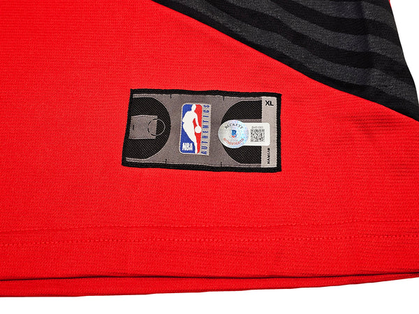 This is a Red Fanatics Portland Trailblazers Jersey that has been hand signed by Damian Lillard. This jersey is Size XL. This item has been certified authentic by Beckett Authentication (BAS) and comes with their tamper-proof QR Code sticker that can be verified on beckett-authentication.com.
