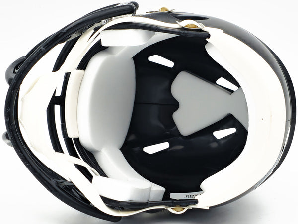 This is a Jacksonville Jaguars Black Speed Mini Helmet that has been hand signed by Travis Etienne. This item has been certified authentic by JSA and comes with their tamper-proof sticker and matching certificate of authenticity.