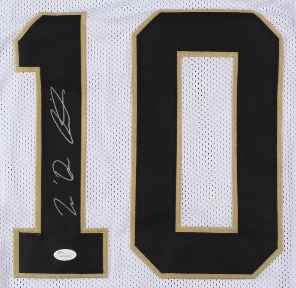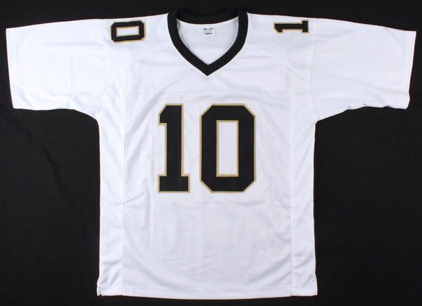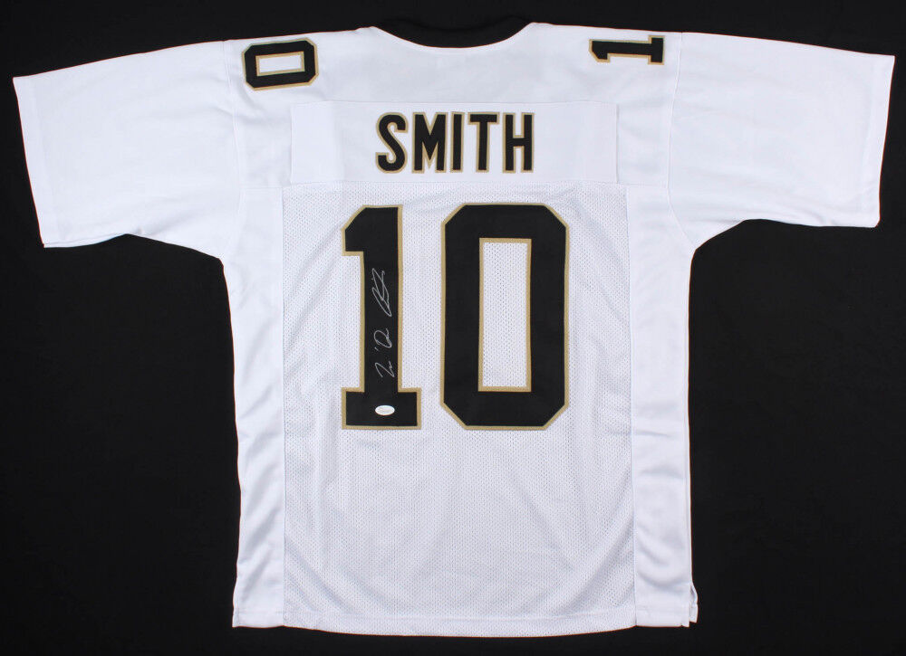 Custom on-field style jersey with everything is sewn on, size XL. Hand-signed in black felt-tip pen by Tre'Quan Smith. The lot / autograph(s) includes an official James Spence Authentication (JSA) hologram and matching COA for authenticity purposes. The signing of this item was witnessed by JSA.Authentication: JSA COA