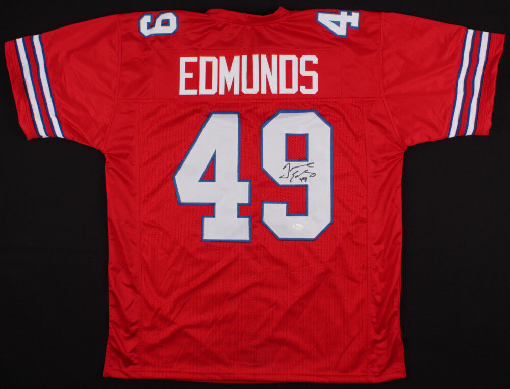 Custom on-field style jersey. Everything is sewn on, size XL. Hand-signed in black felt-tip pen by Tremaine Edmunds. The lot / autograph(s) includes an official James Spence Authentication (JSA) hologram and matching COA for authenticity purposes. The signing of this item was witnessed by JSA.Authentication: JSA COA