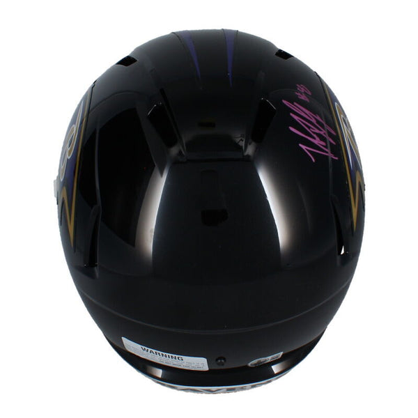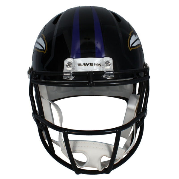 This full size replica speed helmet has been personally hand-signed by Trent Dilfer. It is officially licensed by the National Football League and comes with an individually numbered, tamper-evident hologram from Beckett. To ensure authenticity, the hologram can be reviewed online. This process helps to ensure that the product purchased is authentic and eliminates any possibility of duplication or fraud.