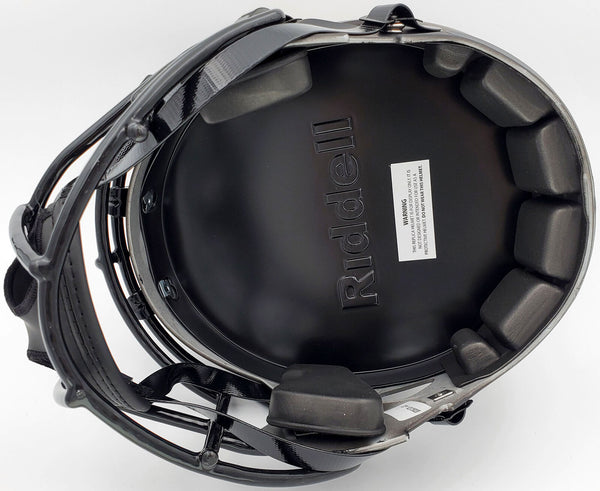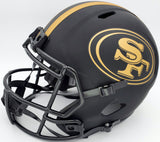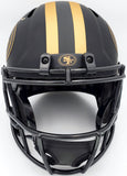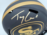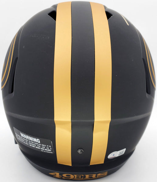 This is a San Francisco 49ers Eclipse Black Full Size Replica Speed Helmet that has been hand signed by Trey Lance. The Eclipse helmets are very delicate and often have some marks or scratches on them. This item has been certified authentic by Beckett Authentication (BAS) and comes with their tamper-proof QR Code sticker that can be verified on the Beckett-authentication.com.