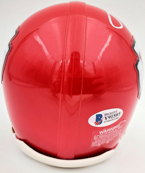 This is a Kansas City Chiefs Mini Helmet that has been hand signed by Tyrann Mathieu. This item has been certified authentic by Beckett Authentication (BAS) and comes with their sticker and matching certificate of authenticity.