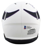 This Autographed Alternate Lunar Speed Mini Helmet W/ Uv Mirrored Back Acrylic Display Case has been Personally Signed by Randy Moss of the Minnesota Vikings. This item is 100% Authentic to include a hologram by Beckett Authentication Services. This item will come with the new Beckett Authentication hologram that has a scannable QR code rather than the traditional COA. If you would like to have a COA, you are welcome to reach out to Beckett for a printed certification once you receive your item. This is a BAS Witnessed Protection Program item which means a Beckett Authentication Service representative was present when this item was being signed. We conducted an autograph signing with Randy Moss where multiples of the same item were signed. While the photographs are representative of this item, the size, placement and strength of the signature may vary. Each item is hand signed, therefore, each autograph is unique. This item can be verified through BAS Witnessed.