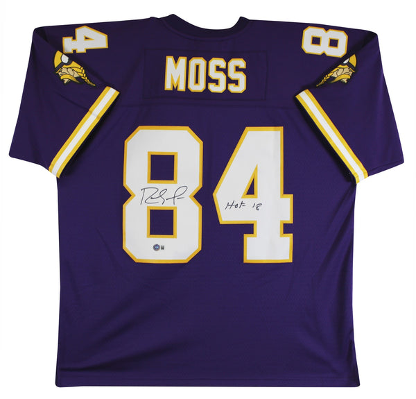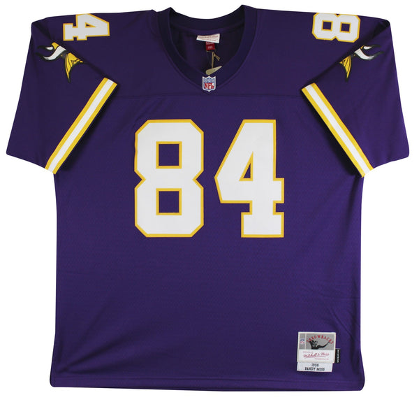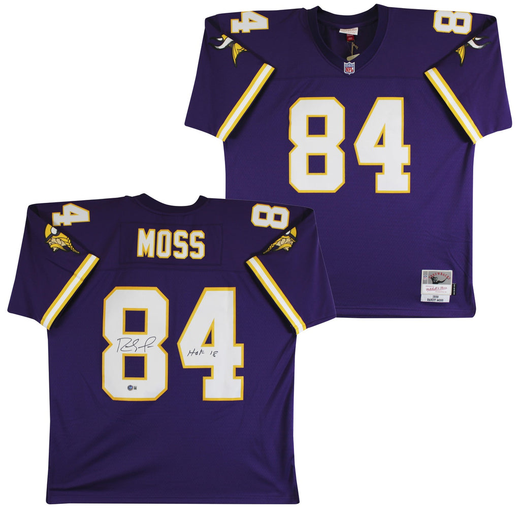 This Autographed Navy Blue Mitchell & Ness Jersey has been Personally Signed by Randy Moss of the New England Patriots. This item is 100% Authentic to include a hologram by Beckett Authentication Services. This item will come with an affixed Beckett Authentication Services (BAS) authentication sticker, which includes a scannable QR code to verify authenticity. Please note that Beckett no longer provides serial-numbered COA cards, and the attached BAS sticker will serve as the complete authentication for this item. This is a BAS Witnessed Protection Program item which means a Beckett Authentication Service representative was present when this item was being signed. We conducted an autograph signing with Randy Moss where multiples of the same item were signed. While the photographs are representative of this item, the size, placement and strength of the signature may vary. Each item is hand signed, therefore, each autograph is unique. This item can be verified through BAS Witnessed. This is a X-Large sized Jersey.
