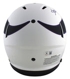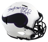 This Autographed Alternate Lunar Riddell Authentic Full Size Speed Proline Helmet with the inscription of "Straight Cash Homie" has been Personally Signed by Randy Moss of the Minnesota Vikings. This item is 100% Authentic to include a hologram by Beckett Authentication Services. This item will come with the new Beckett Authentication hologram that has a scannable QR code rather than the traditional COA. If you would like to have a COA, you are welcome to reach out to Beckett for a printed certification once you receive your item. This is a BAS Witnessed Protection Program item which means a Beckett Authentication Service representative was present when this item was being signed. This is a stock item. We conducted an autograph signing with Randy Moss and we have several of these available. The one you will receive will be of equal quality to the one pictured. This item can be verified through BAS Witnessed.