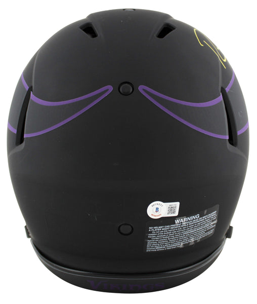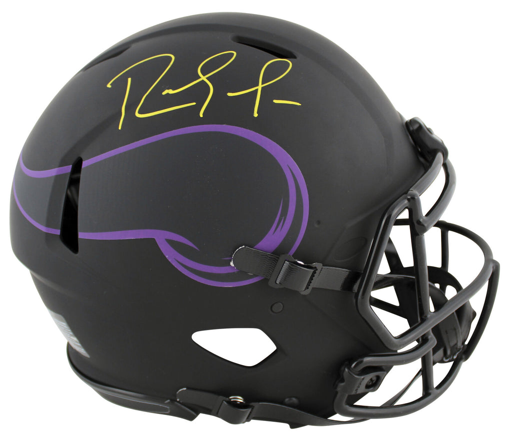This Autographed Alternate Eclipse Riddell Authentic Full Size Speed Proline Helmet has been Personally Signed by Randy Moss of the Minnesota Vikings. This item is 100% Authentic to include a hologram by Beckett Authentication Services. This item will come with the new Beckett Authentication hologram that has a scannable QR code rather than the traditional COA. If you would like to have a COA, you are welcome to reach out to Beckett for a printed certification once you receive your item. This is a BAS Witnessed Protection Program item which means a Beckett Authentication Service representative was present when this item was being signed. We conducted an autograph signing with Randy Moss where multiples of the same item were signed. While the photographs are representative of this item, the size, placement and strength of the signature may vary. Each item is hand signed, therefore, each autograph is unique. This item can be verified through BAS Witnessed.