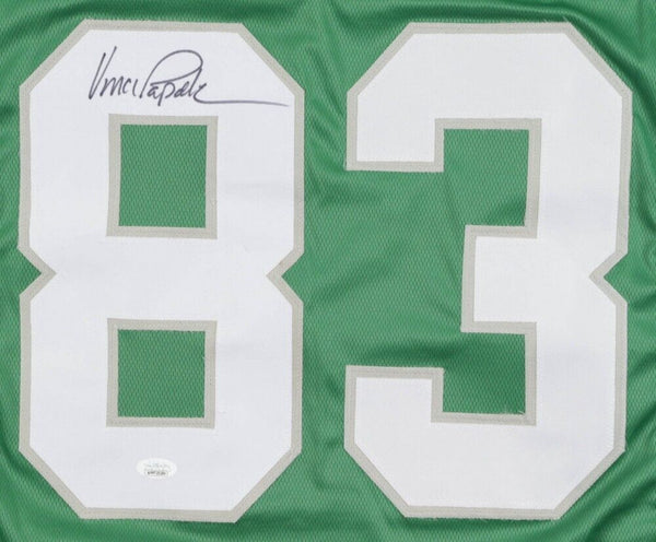 Custom on-field style jersey. Everything sewn on, size XL. Hand-signed in black felt-tip pen by Vince Papale. The lot / autograph(s) includes an official James Spence Authentication (JSA) hologram and matching COA for authenticity purposes.Authentication: JSA COA