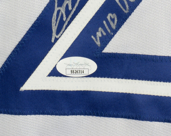 Featured is a Vladimir Guerrero Jr. signed custom white pro style baseball jersey in which he added the "MLB Debut 4/26/19" inscription. This jersey was hand signed by Vladimir Guerrero Jr. in the presence of a Beckett authentication representative. Included with the jersey is a Beckett witnessed hologram and certificate of authentication. This jersey would make a great addition to any sports memorabilia collection.. SPECIFICATIONS Autographed By: Vladimir Guerrero Jr. Team: Toronto Blue Jays Sport: Baseball Authentication: Beckett Grading Services