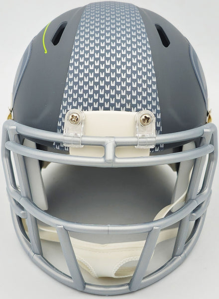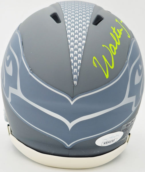 This is a Seattle Seahawks Slate Gray Speed Mini Helmet that has been hand signed by Walter Jones. This item has been certified authentic by JSA and comes with their tamper-proof hologram and matching certificate of authenticity.