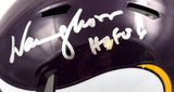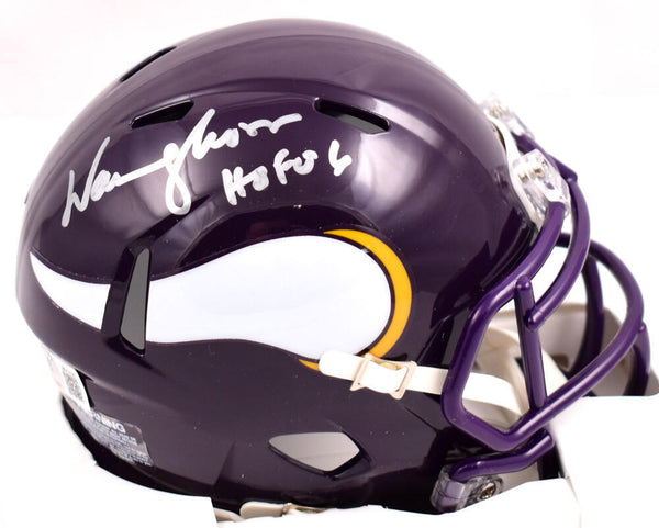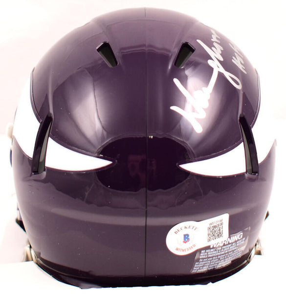 Warren Moon Autographed Minnesota Vikings 83-01 Speed Mini Helmet- Beckett W Hologram *Silver This is a Warren Moon of the Minnesota Vikings hand autographed Riddell Football 83-01 Speed Mini Helmet. Inscribed HOF. This item has a Beckett Witnessed Authentication, which comes with a Beckett numbered hologram and a QR code for verification. You can view this item on the Beckett Authentication website. It was signed either at a public autograph appearance or a private signing. This is a stock photo of the item. Although you may not receive this exact item, the item you receive is virtually identical, brand new, and in great shape.