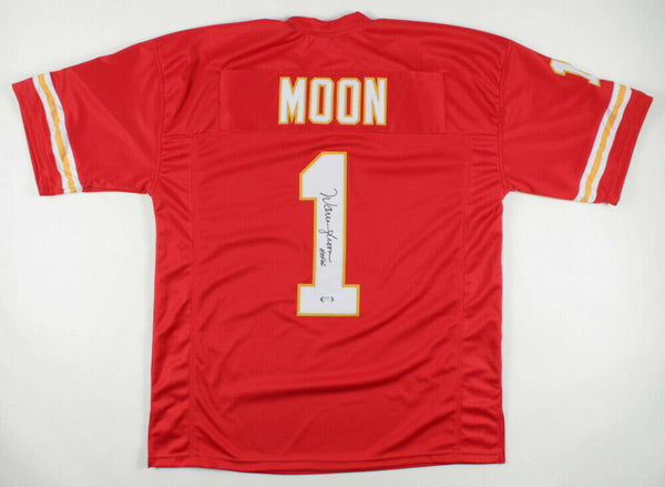 Custom on-field style jersey. Everything sewn on, size XL. Hand-signed by Warren Moon (HOF).The lot / autograph(s) includes an official PSA/DNA hologram and matching COA for authenticity purposes. The signing of this item was witnessed by PSA.Authentication: PSA COA
