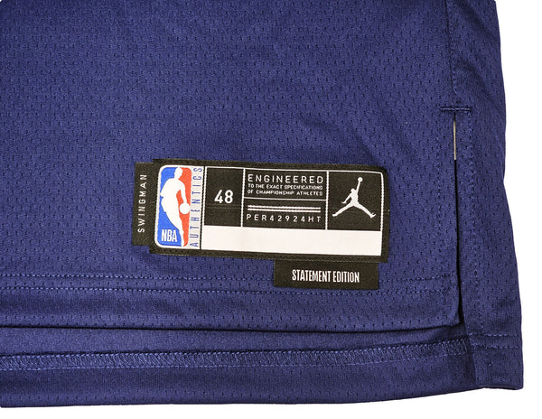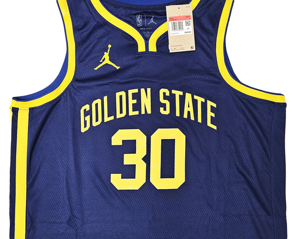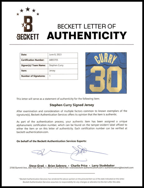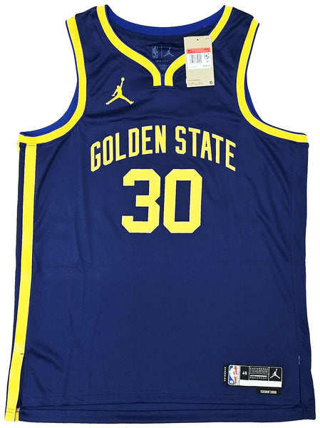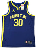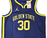 This is a Blue Jordan Golden State Warriors Statement Edition Jersey that has been hand signed by Stephen Curry. This jersey is Size 48. This item has been certified authentic by Beckett Authentication (BAS) and comes with their tamper-proof QR Code sticker and matching full page certificate of authenticity.