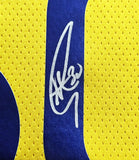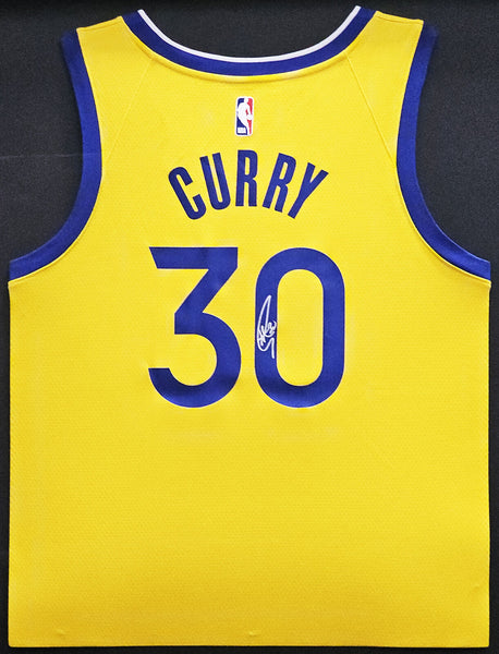 This is a framed Yellow Nike Swingman Golden State Warriors Jersey, approximately 31x36 with the frame, that has been hand signed by Stephen Curry. This item has been certified authentic by Beckett Authentication (BAS) and comes with their tamper-proof sticker.