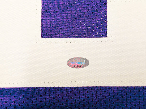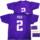 This is a Purple Jersey that has been hand signed by Ja'Lynn Polk. This is a custom jersey with no name brand. The approximate size is XL. It has nice sewn in name and numbers. This item was signed in the presence of a Mill Creek Sports representative and comes with their serial numbered hologram and matching certificate of authenticity.
