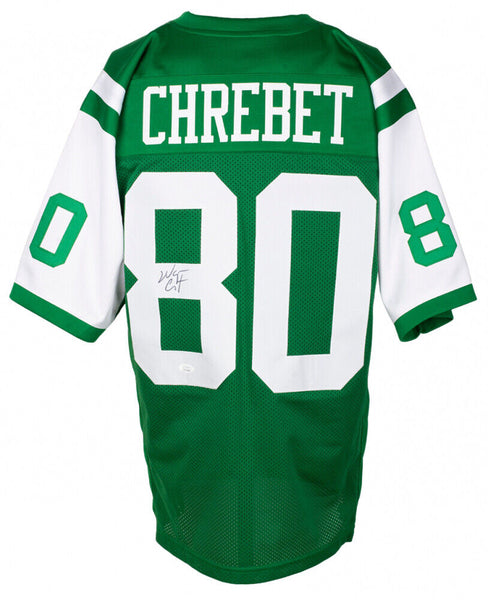Custom on-field style jersey. Everything is sewn on, size XL. Hand-signed in black felt-tip pen by Wayne Chrebet The autograph includes an official James Spence Authentication hologram and QR Code card for authenticity purposes. Authentication: JSA Hologram & QR Code card