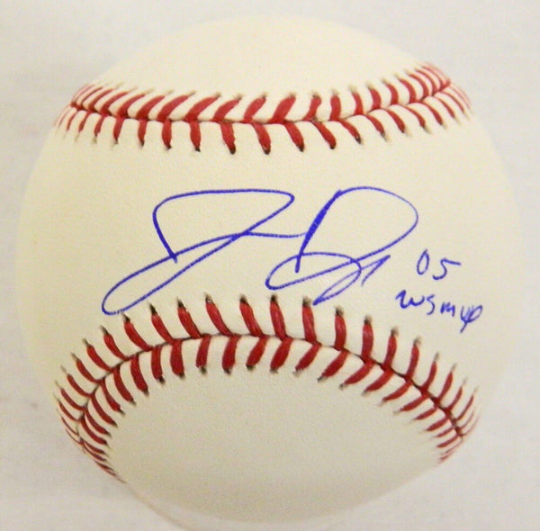 Jermaine Dye signed Rawlings official MLB baseball with '05 WS MVP' inscription. Item comes with a Schwartz Sports Memorabilia tamper-proof numbered hologram and Certificate of Authenticity which can be verified online.