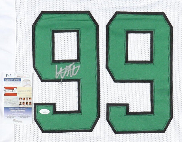 Custom on-field style jersey. Everything sewn on, size XL. Hand-signed by Will McDonald IV.The autograph(s) includes an official James Spence Authentication (JSA) "Signature Debut" hologram and COA. "Signature Debut" is the autographed memorabilia equivalent to a rookie card. The JSA definition of a "Signature Debut" is as follows: "Any item that is autographed and received by JSA prior to the last game of the signer's official rookie season.Authentication: JSA COA